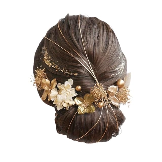[Lomeri] ロメリ ドライフラワーの髪飾り 成人式 卒業式 結婚式 袴Gゴールド小花のセット (G57ゴールド)