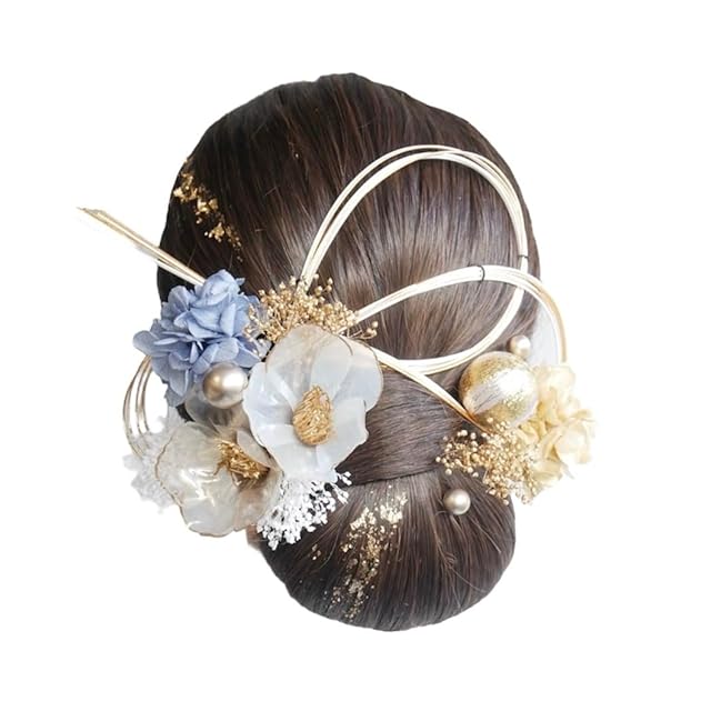 [Lomeri ロメリ] タイトヘア 髪飾り おかみさん ロメリ ドライフラワーの髪飾り 成人式 卒業式 結婚式 袴 G14 (青)