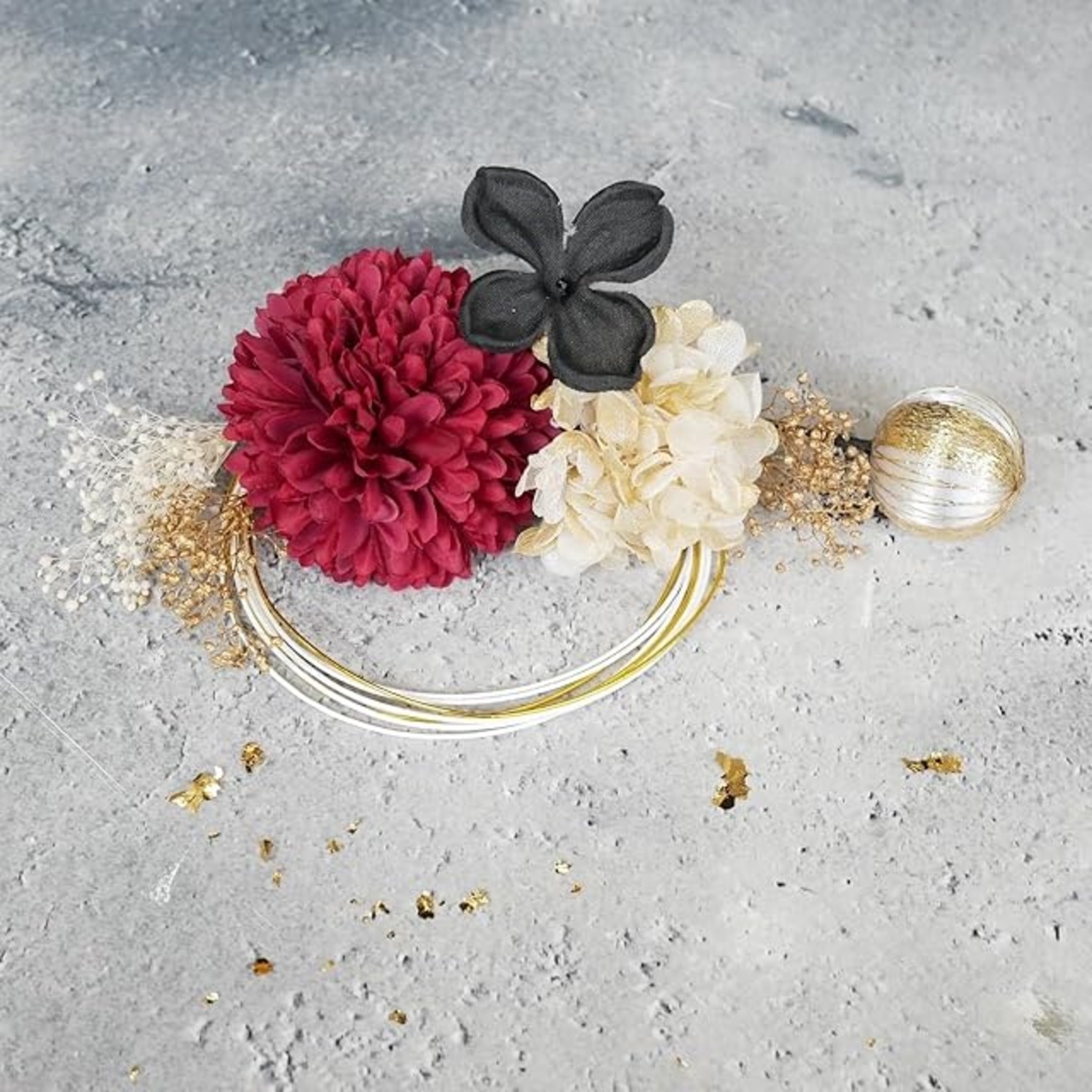 [Lomeri ロメリ] ゴールド マムの髪飾り ドライフラワー 和玉 水引 成人式 結婚式 前撮り U6 (レッド)
