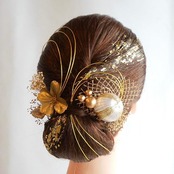 ゴールドのお花と水引(3本)和玉 ゴールドメッシュゴールド系のパーツを組み合わせたセットです。