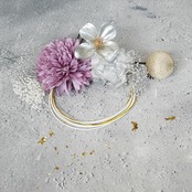 パーツ詳細ドライフラワー 4パーツ、 アートフラワー 2パーツ、 和玉ピック、 金箔、 水引 約90cm (白2本、ゴールド1本)