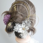 [Lomeri ロメリ] ゴールド マムの髪飾り ドライフラワー 和玉 水引 成人式 結婚式 前撮り U5 (パープル)