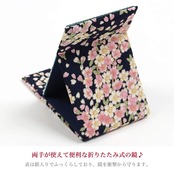 小紋工房 立鏡 大 卓上ミラー モダン椿(アイボリー) 二越ちりめん 京都 和KOMONO 江戸小紋 1303