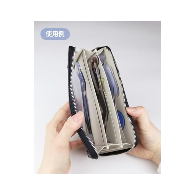 財布のような見た目のグッズ収納ケース。アクリルスタンドを複数持ち歩きたいときに 3つに別れた収納部にはそれぞれ2つのポケットが付属。アクリルスタンドと台座を一緒に持ち歩くことができます。側面は透明ポケットになっているのでお気に入りの推しがいつでも見えます♪