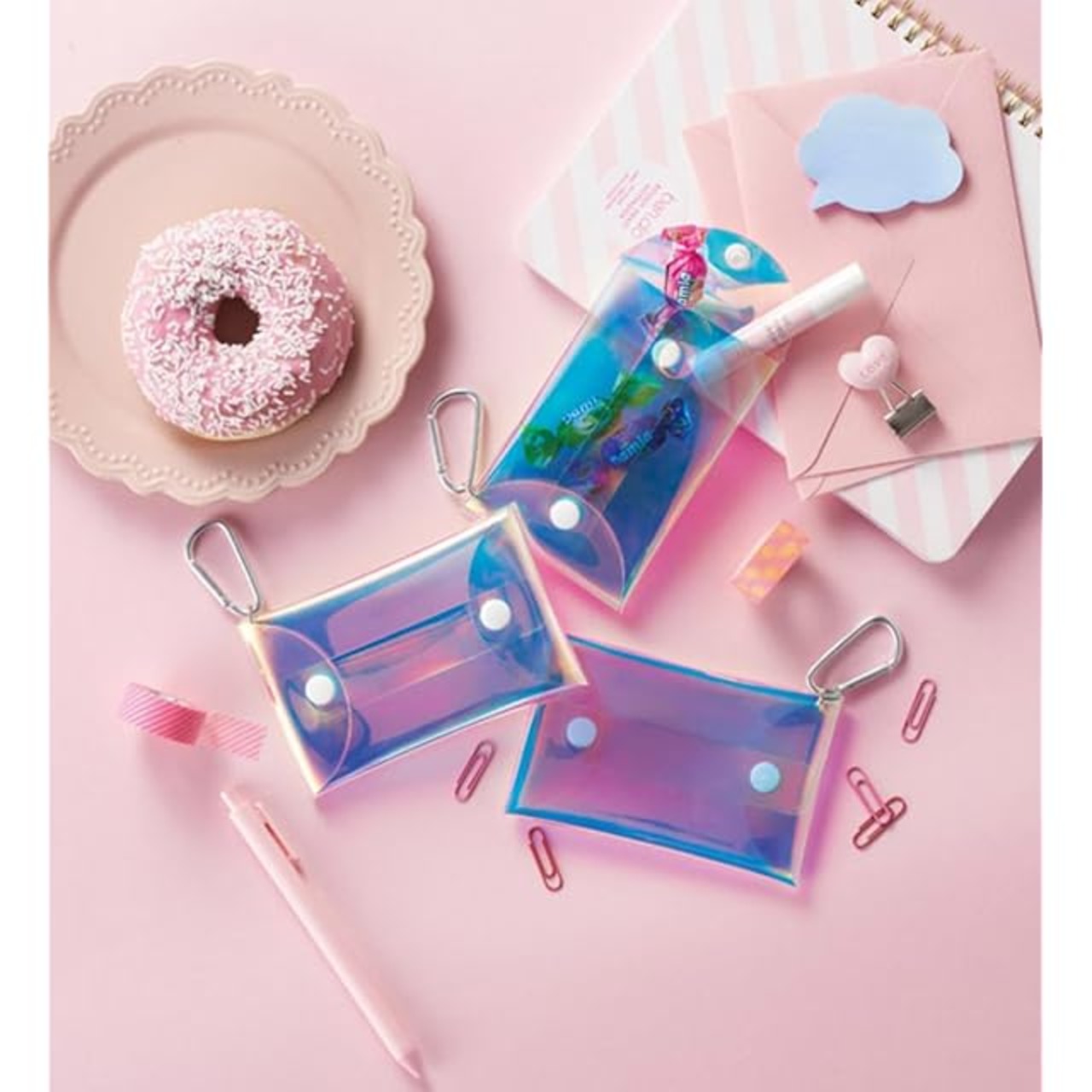商品名:[丸辰] クリアポーチ シャイニング オーロラ かわいい ミニポーチ カラビナフック付き ガジェットケース カード入れ 名刺入れ 入るサイズ 8×12.5cm 35891 ー