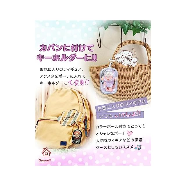 商品名:GrooveM クリアポーチ カラビナ アクスタケース アクスタポーチ 推し活 推し活グッズ フィギュア 持ち運び 収納 オタ活 アクキー オタ活 (A-6(四角ブラック))