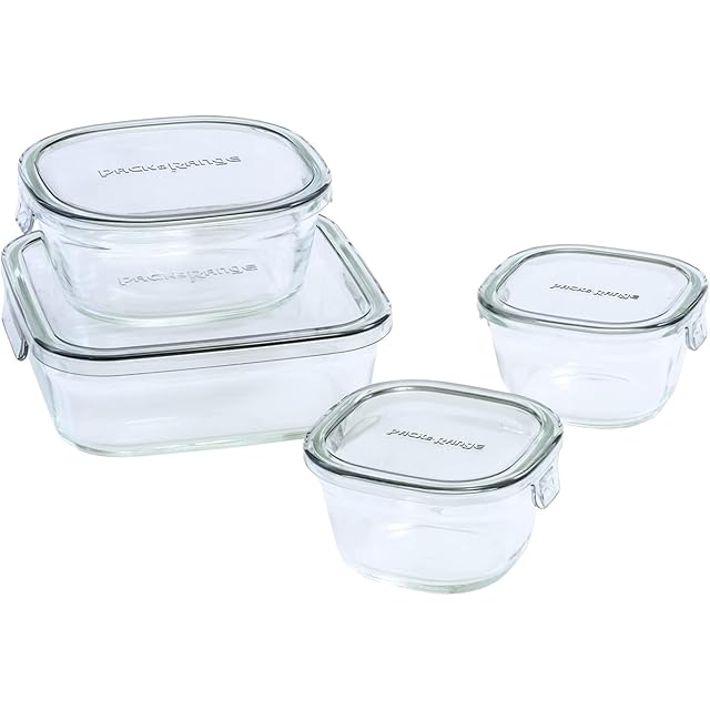 iwaki(イワキ) 耐熱ガラス 保存容器 クールグレー 角型 4点セット パック&レンジ PCPRN4GY21