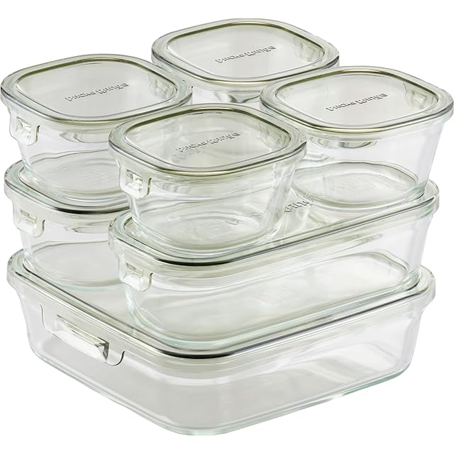 iwaki(イワキ) 耐熱ガラス 保存容器 オリーブグリーン システムセット パック&レンジ PC-PRN7G4