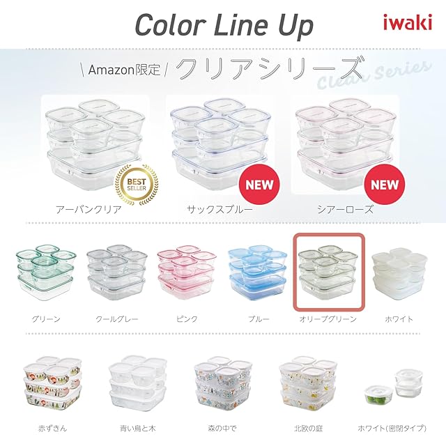 商品名:iwaki(イワキ) 耐熱ガラス 保存容器 オリーブグリーン システムセット パック&レンジ PC-PRN7G4