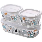 iwaki(イワキ) 耐熱ガラス 保存容器 シンジカトウ 森の中で 角型 3点セット パック&レンジ PS-PRNSNE3