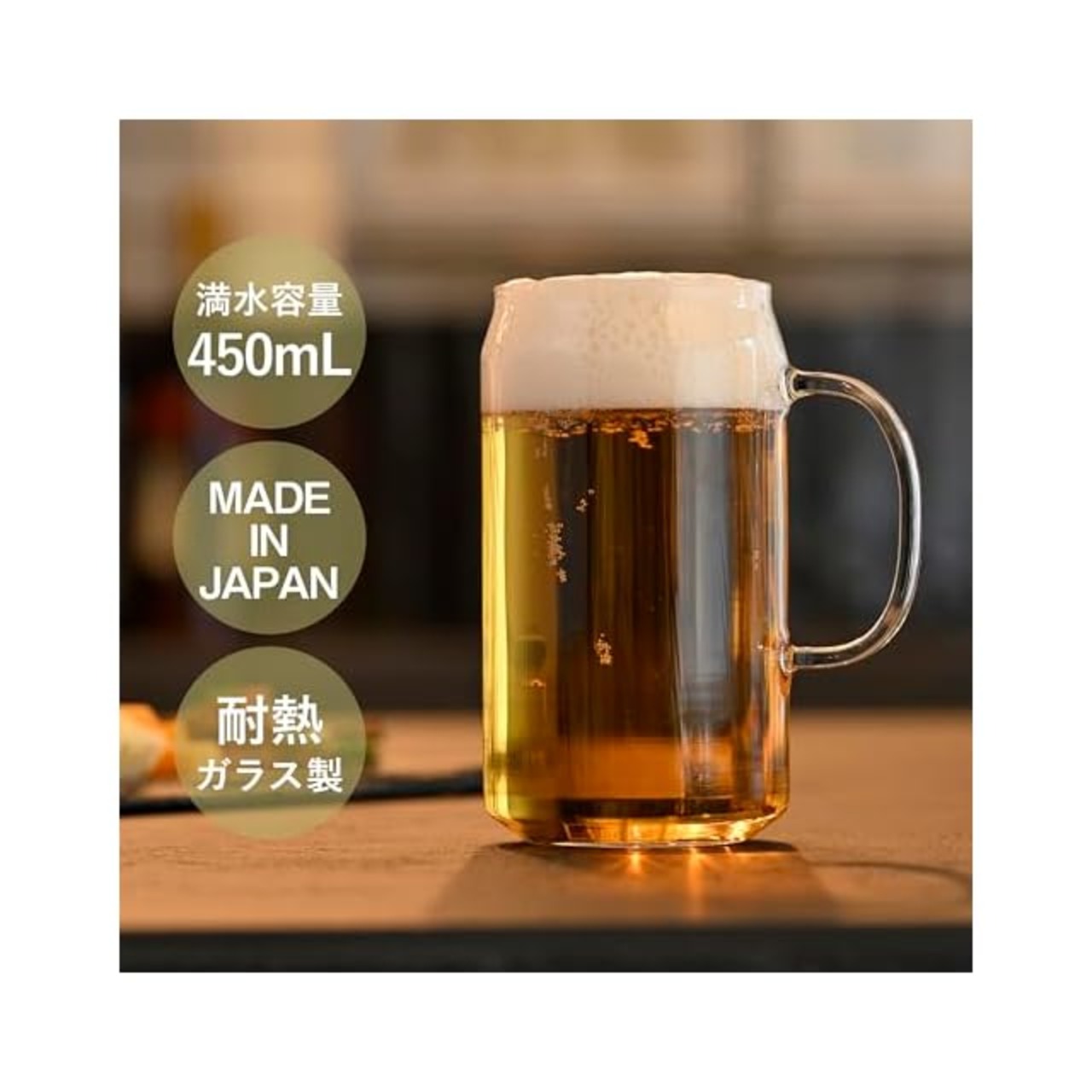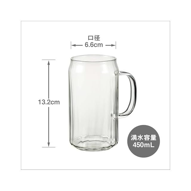 商品名:HARIO(ハリオ) 耐熱グラス カン 450mL ビール グラス ジョッキ 食洗機 電子レンジ 使用可 耐熱ガラス 日本製 HGK-450-M