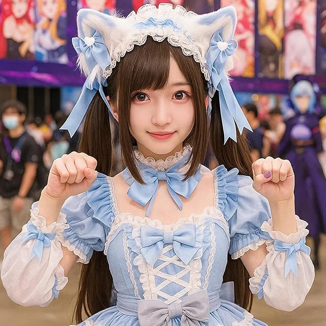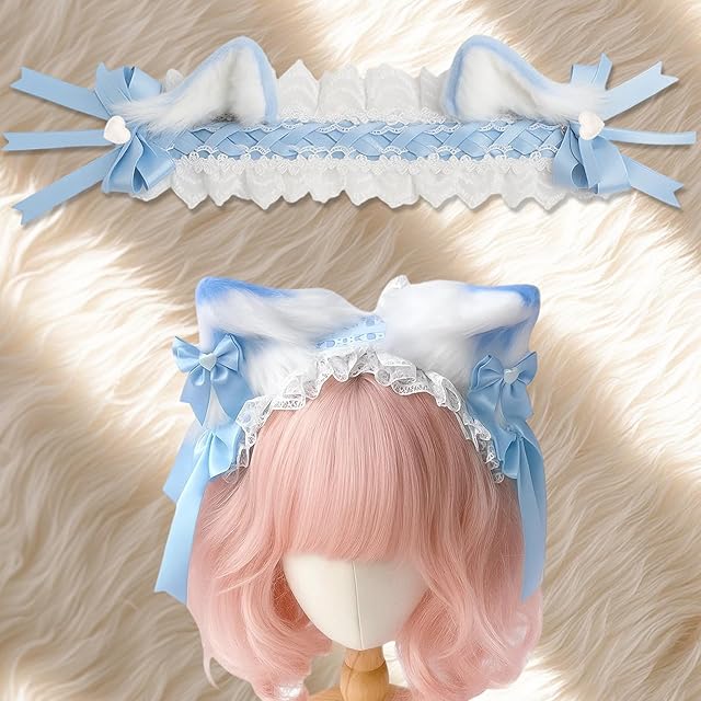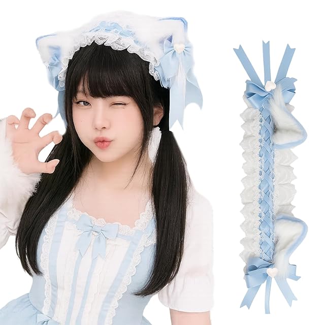 ヘッドドレス 青 と メイド カチューシャ: この猫耳カチューシャは、ファッションを楽しむ方への贈り物としても喜ばれます。ロリータやゴスロリファッションの愛好者に特におすすめです。