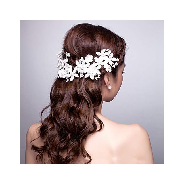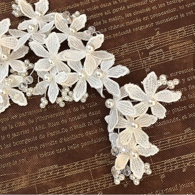 【J's select】上品 フラワー 花嫁 お花の パール ヘッド ドレス 髪飾り ブライダル 結婚式 パーティー に (B)<br><br>花嫁さんに人気のお花をモチーフにしたナチュラルテイストが可愛らしいヘッドパーツ。<br> 一点一点手作りのハンドメイドなので、細部まで繊細で上品な作り。お花とパールに存在感がありとっても華やかにお召しいただけます。<br> 挙式でベールの際もよく合いもちろんパーティでも素敵です。<br> トップ、サイド、シニヨンなど付ける位置を変えることでイメージを変えることができます。ウェディングドレスで挙式と披露宴で イメージを変えたい方にもぴったりです。<br> 海外製(インポート) ヘッドドレス サイズ:長さ約30㎝ 幅最大約10㎝ 重さ約50g※商標5952326号取得済み
