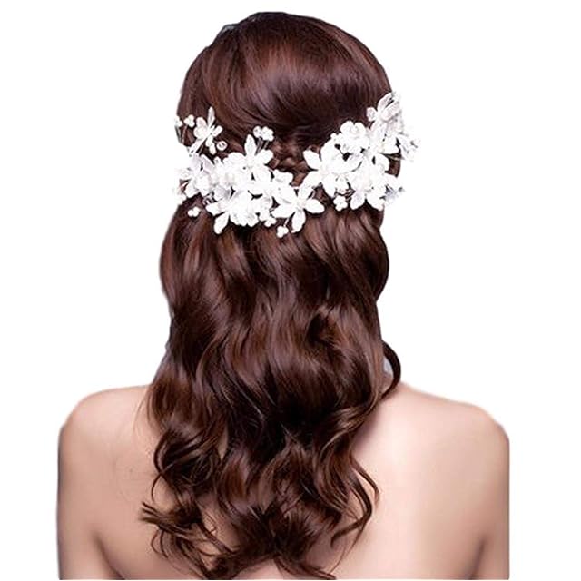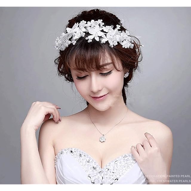 【J's select】上品 フラワー 花嫁 お花の パール ヘッド ドレス 髪飾り ブライダル 結婚式 パーティー に (B)