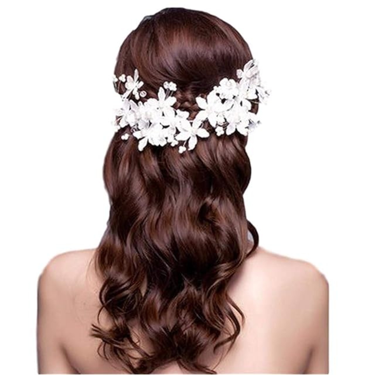 商品名:【J's select】上品 フラワー 花嫁 お花の パール ヘッド ドレス 髪飾り ブライダル 結婚式 パーティー に (B)