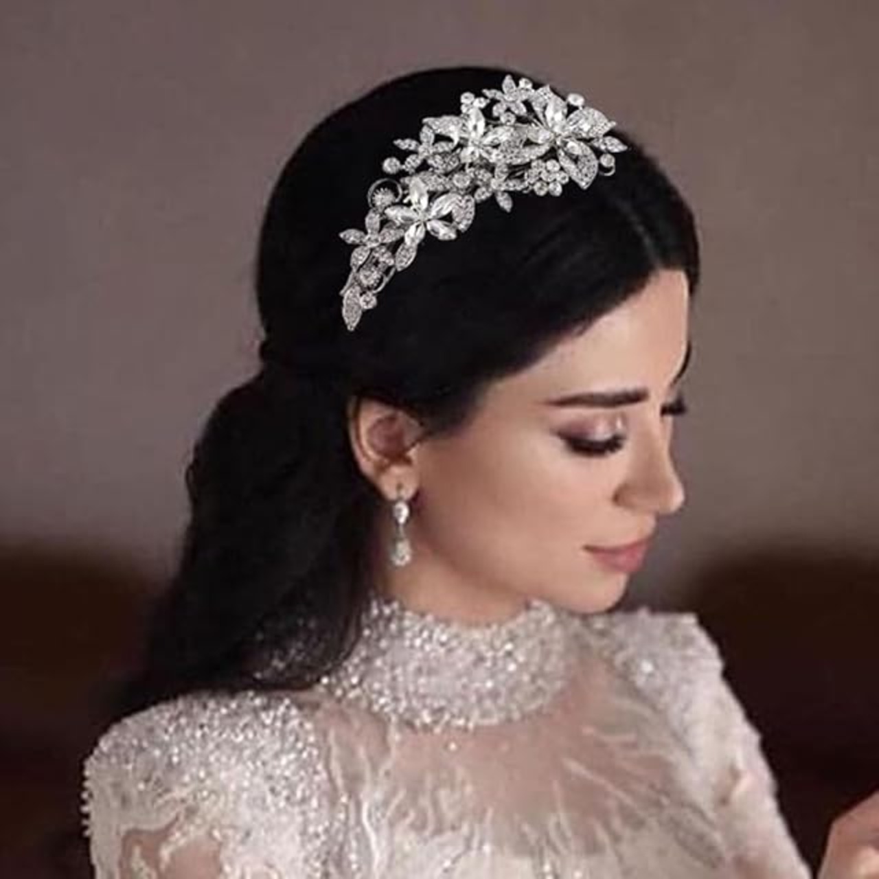 【J's select】【J's select】結婚式 パーティー に ブライダル ビジュー ヘッドドレス 髪飾り<br><br>大人気のフラワー 花がモチーフのヘッドパーツです<br>ビジューに存在感があり、とても華やかにお召しいただけます。<br>後ろはコームが3箇所についているので角度も変えやすく様々なヘアアレンジに対応できます。トップ、サイド、シニヨンなど付ける位置を変えることでイメージを変えることができます。ウェディングドレスで挙式と披露宴で イメージを変えたい方にもぴったりです。<br>挙式でベールの際もよく合いもちろんパーティでも素敵です。 社交ダンス、発表会などでもお使いいただけます。<br>素材:シルバー ストーン クリスタル 海外製(インポート) 【サイズ】高さ約7cm × 横幅(直径)約14.8cm 76g※商標5952326号取得済み