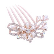 [ドナリー]簪 櫛かんざし 髪飾り ヘアピン ヘッドドレス 髪留め ゴールド ウェディング パール ビジュー フォーマル 結婚式 披露宴 花嫁 着物 成人式 入学式 子供 発表会 普段使い レディース (リボン/ホワイトパール)