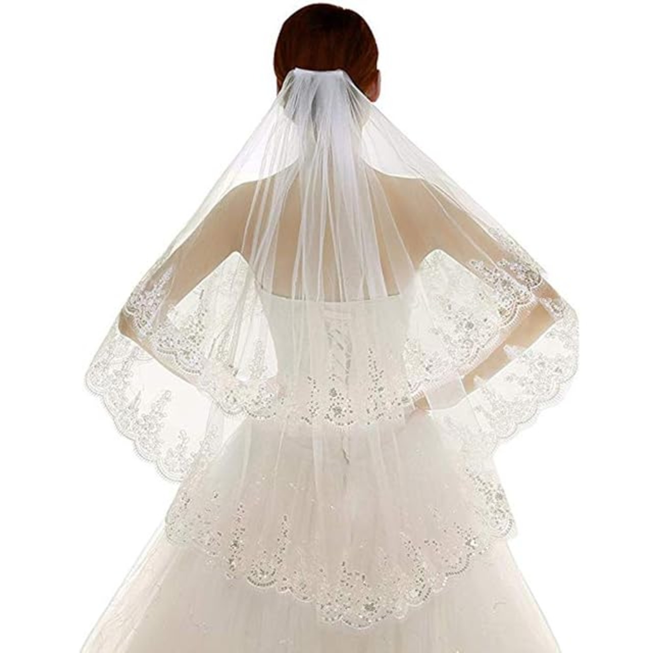 商品名:[Ymgot] ウエディング ベール コーム付き ショート ブライダル ヴェール 2段 レース縁取り 花嫁 結婚式 (オフホワイト)