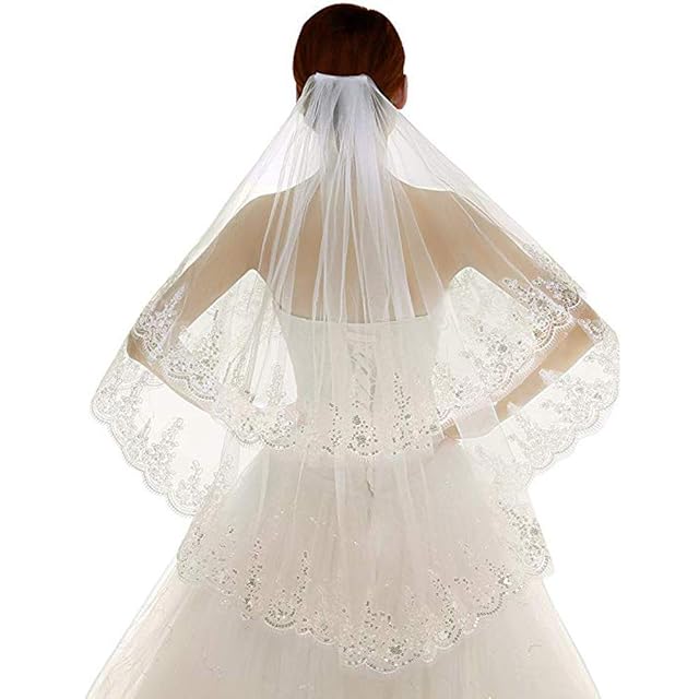 [Ymgot] ウエディング ベール コーム付き ショート ブライダル ヴェール 2段 レース縁取り 花嫁 結婚式 (オフホワイト)