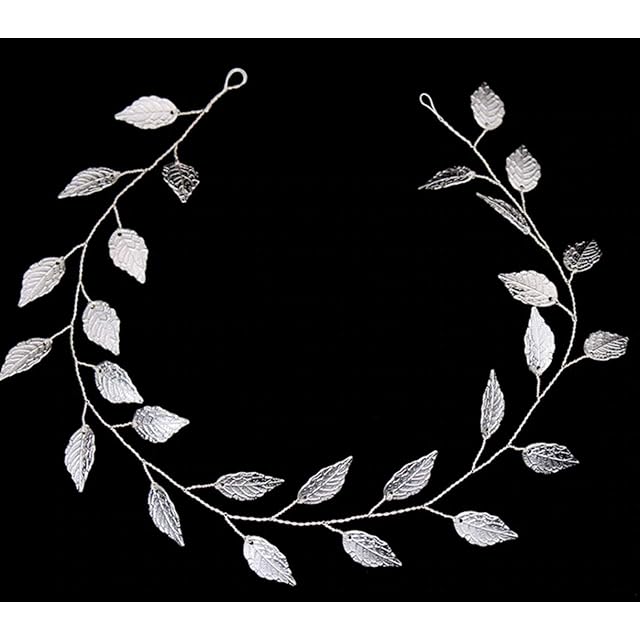 【J's select】リーフ ウェディング 花嫁 髪飾り ヘッド ドレス 披露宴 結婚式 二次会 和装 パーティーに (シルバー)