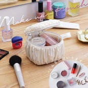 MOTTERU(モッテル) ギャザーミニスクエアポーチ 収納 自立 化粧ポーチ ミニポーチ コスメ ガジェットポーチ 旅行 ホワイト MOT-GPOUCH01-WH