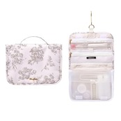 旅先のバスルームなどにハンガーフックで吊るして使用できる、便利なハンギングポーチです。