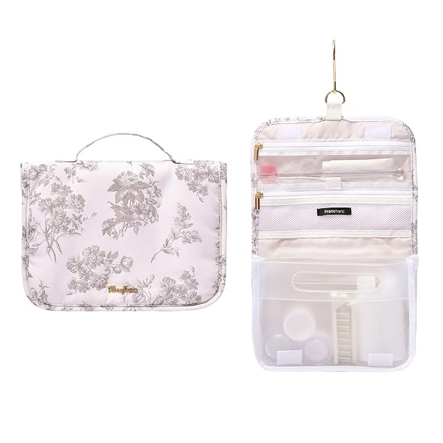 旅先のバスルームなどにハンガーフックで吊るして使用できる、便利なハンギングポーチです。<br/>メッシュのファスナーポケットがコスメや歯ブラシ、ヘアピンなどこまごましたアイテムの収納にぴったり。<br/>取り外し可能なクリアポーチはスパバッグにもおすすめです。<br/>【注意事項】<br/>洗濯はお避けください。<br/>素材の特性上、直射日光やライトに長時間照らされると変色する場合があります。<br/>強い摩擦や水濡れは色落ちおよび傷の原因となりますのでお避けください。<br/>汚れを落とす場合は薄めた中性洗剤を布に含ませ拭き取ってください。<br/>ベンジン・シンナー類は使用しないでください。<br/>商品に過度の荷重を加えますと破損の原因になりますので、ご使用の際は十分にお気をつけください。<br/>濃色部分は色移りする可能性がございますので淡色との組み合わせはお避けください。<br/>原産国:中国