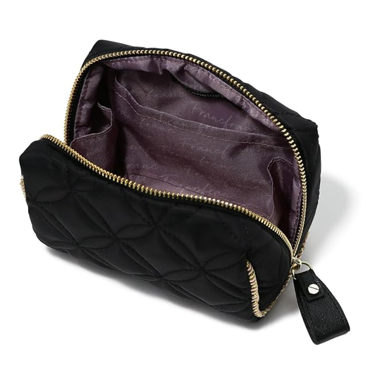 シンプルなキルティングがエレガントなバニティポーチです。<br/>コンパクトなサイズのポーチなので小さめのバッグにも入れやすく使い勝手のいい商品です。<br/>内生地にはFrancfrancのロゴの柄で遊びを加えています。<br/>ナイロン素材なので吸湿性が低い為、水に濡れても乾きやすく、普段使いにぴったりなアイテムです。<br/>【注意事項】<br/> 洗濯はお避け下さい。<br/> 強い摩擦や水ぬれは色落ちおよび傷の原因となりますのでお避け下さい。<br/> 汚れを落とす場合は薄めた中性洗剤を布に含ませ拭き取ってください。ベンジン・シンナー類は使用しないで下さい。<br/> 商品に強い衝撃、過度の荷重を加えますと破損の原因になりますので、ご使用の際は十分にお気をつけ下さいますよう、お願いいたします。
