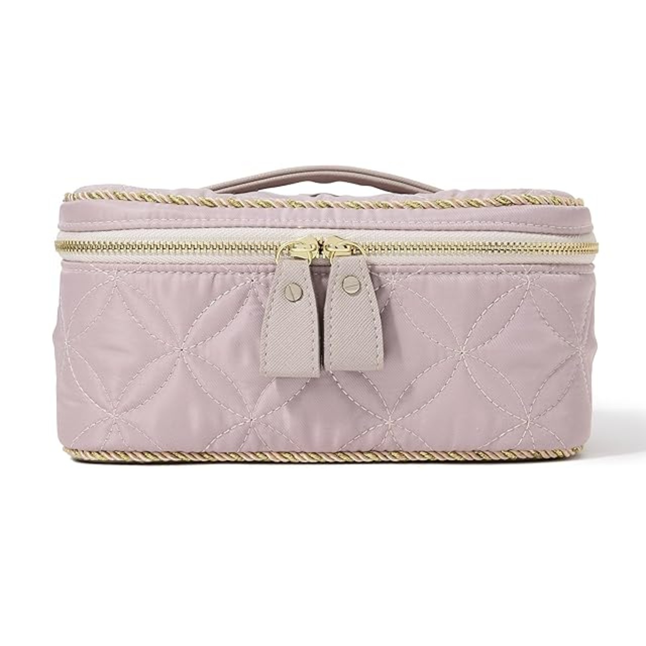 シンプルなキルティングがエレガントなバニティポーチです。<br/>内側にはブラシホルダーやポケットがあり、メイク道具をキレイに整理整頓も簡単。<br/>取り外しが可能な仕切りも付いているので、メイク道具を自在に収納いただけます。<br/>内生地にはFrancfrancのロゴの柄で遊びを加えています。<br/>ナイロン素材なので吸湿性が低い為、水に濡れても乾きやすく、普段使いにぴったりなアイテムです。<br/>【注意事項】<br/> 洗濯はお避け下さい。<br/> 強い摩擦や水ぬれは色落ちおよび傷の原因となりますのでお避け下さい。<br/> 汚れを落とす場合は薄めた中性洗剤を布に含ませ拭き取ってください。ベンジン・シンナー類は使用しないで下さい。<br/> 商品に強い衝撃、過度の荷重を加えますと破損の原因になりますので、ご使用の際は十分にお気をつけ下さいますよう、お願いいたします。