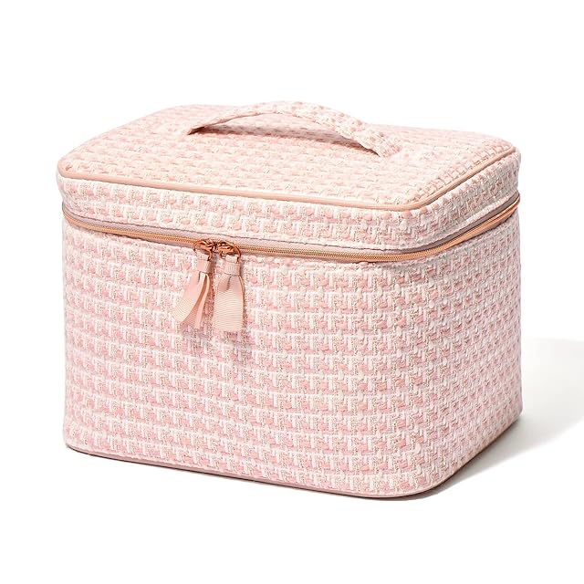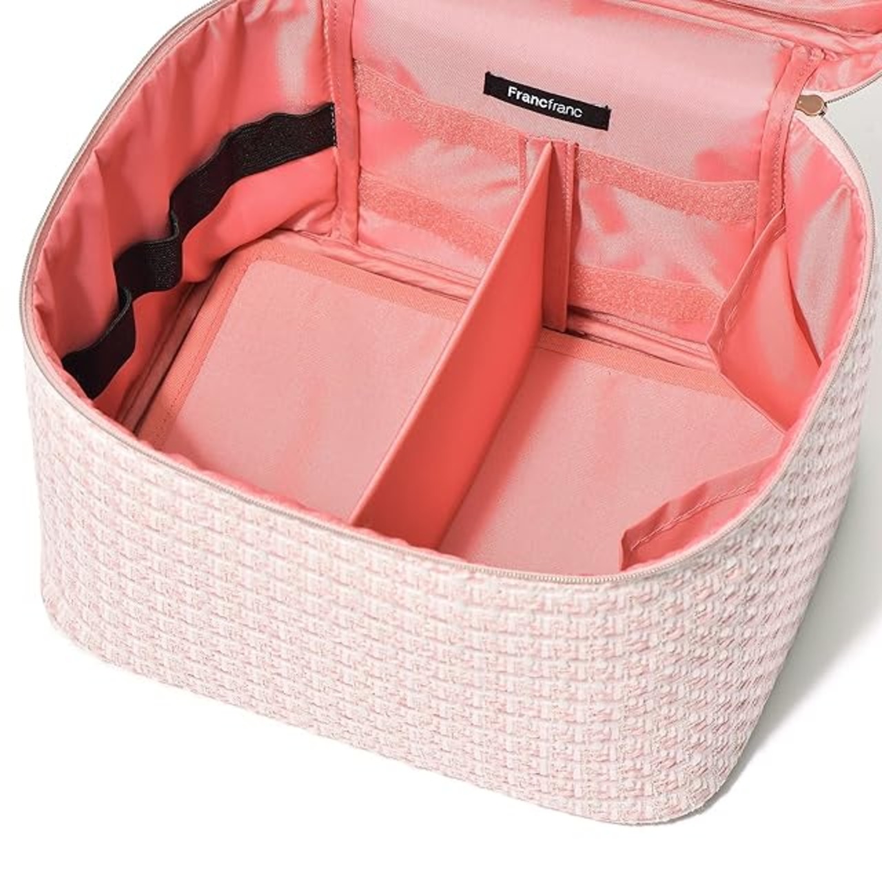 商品名:Francfranc フランフラン ツイード バニティポーチ ピンク L メイクボックス 化粧ポーチ コスメ