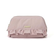 シンプルなデザインにフリルをあしらった大人かわいいワイヤーポーチです。