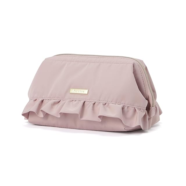 シンプルなデザインにフリルをあしらった大人かわいいワイヤーポーチです。<br/>季節やトレンドに左右されず定番でいつも持っておける使いやすいデザイン。<br/>表生地には撥水加工が施してあり、汚れや水などが付いてもサッと拭きとれます。<br/>口がサイドまで大きく開くのでコスメの出し入れがしやすく、こまごましたアイテムも迷子になりません。<br/>【注意事項】<br/> 洗濯はお避けください。<br/> 素材の特性上、直射日光やライトに長時間照らされると変色する場合があります。<br/> 強い摩擦や水濡れは色落ちおよび傷の原因となりますのでお避けください。<br/> 汚れが付着した場合は布等を使用して除去してください。油性など種類によって取れにくい汚れもございますのでご了承ください。<br/> ベンジン・シンナー類は使用しないでください。<br/> 商品に過度の荷重を加えますと破損の原因になりますので、ご使用の際は十分にお気をつけください。<br/> 濃色部分は色移りする可能性がございますので淡色との組み合わせはお避けください。<br/> 撥水効果は使用頻度により徐々に低下していきます。撥水が弱くなりましたら市販の撥水スプレーをご使用ください。<br/> 表生地に撥水加工をしております。<br/>撥水(水をはじきやすい) :汚れがつきにくい・汚れをサッと拭き取れる・濡れても浸透しにくくシミになりにくい<br/>※ご使用頻度や経年により効果は徐々に弱くなります。<br/> 原産国:中国