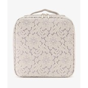 花々をかたどった繊細なレースが目を引く、優美な雰囲気をまとったメイクポーチ。角を落としたやわらかなスクエアフォルムで、すっきりとスマートな表情も見せてくれます。ファスナーを大きく開けて内側に付属のミラーをセットすれば、ミニドレッサーのようにも使える設計で、機能性にも追求しました。内ポケットが複数付き、リップやブラシなどの小さなメイク道具もきちんと分けて収納可能です。トップには持ち手を備えており、持ち運びもスムーズ。普段使いにはもちろん、泊りがけの旅行や外出先でのメイク直し用としても重宝します。《カラー表記につきまして》内側素材にパープルを使用している為、実際はグレーがかったベージュのお色味となっております。