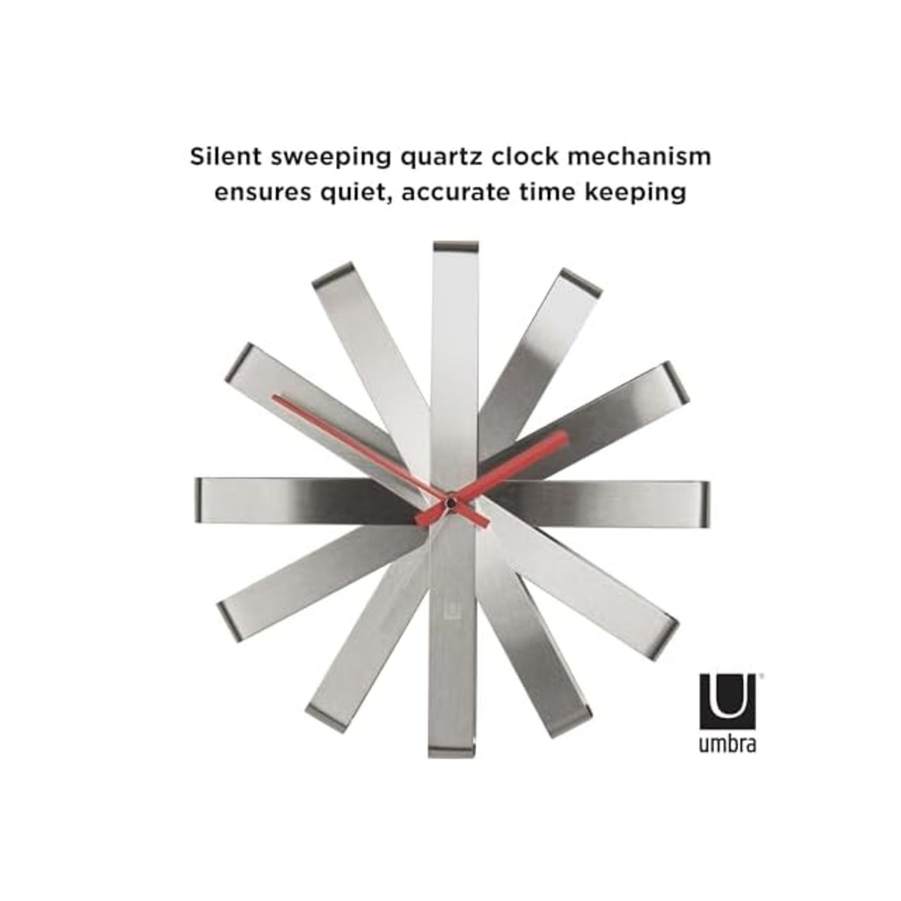 商品名:umbra 掛け時計 おしゃれ ウォールクロック アナログ インテリア ニッケル 直径30cm RIBBON 2118070590