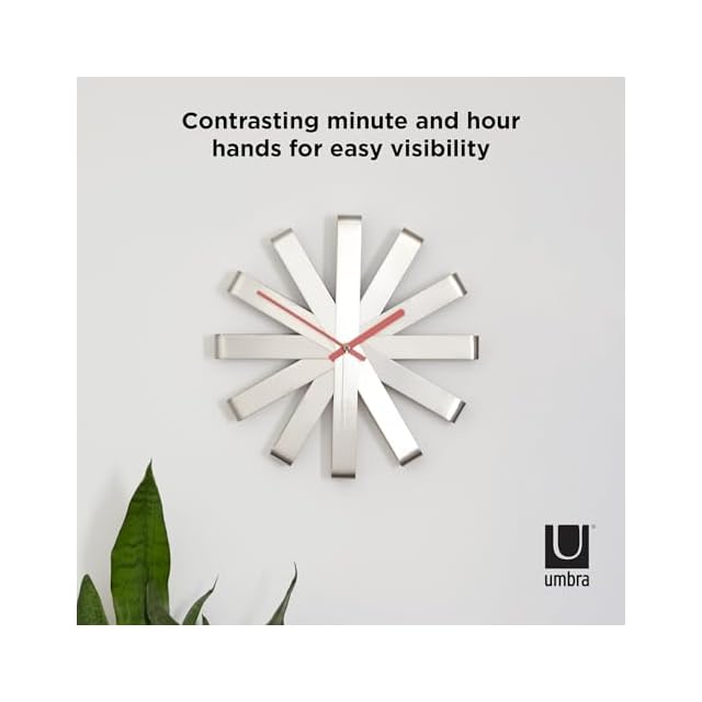 umbra 掛け時計 おしゃれ ウォールクロック アナログ インテリア ニッケル 直径30cm RIBBON 2118070590
