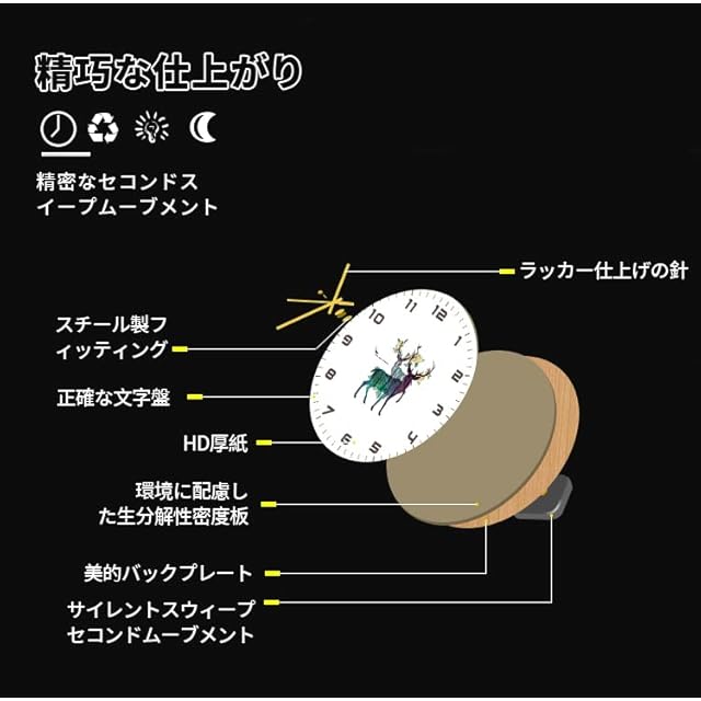 【静音・正確】を実現 高品質の静音時計ムーブメントで、時計の音を気にする必要がありません、カチカチ音がなく、ほとんど聞こえないです。秒針の音も静かで、とても静かで、良い睡眠環境と仕事環境を作り出します。掛け時計のムーブメントは厳しい検査を受けており、精度が高いので、正確に時刻を表示することができます。