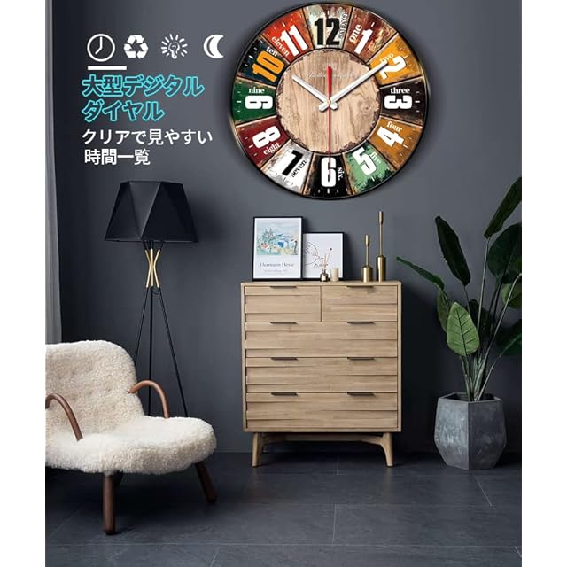 【見やすい大きな数字】この壁掛け時計は、1〜12の大きなアラビア数字で、シンプルで実用的、はっきり見やすい、大きな数字で時間が見やすい。 目が悪い人でも見ることができます。