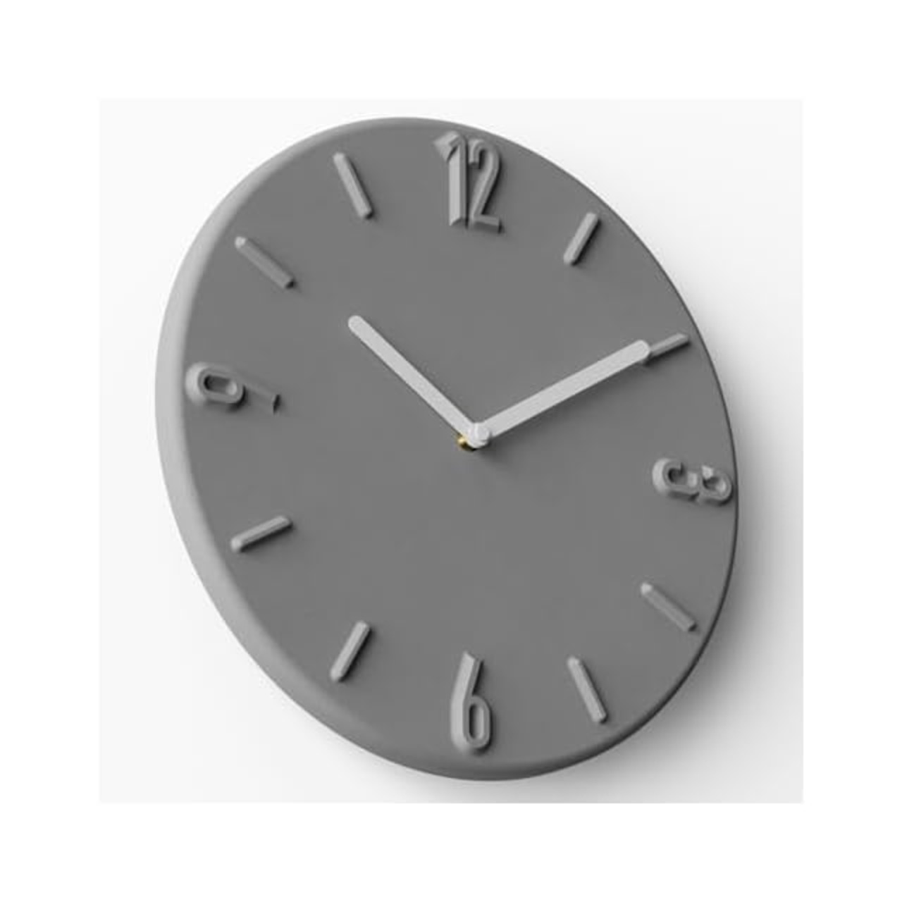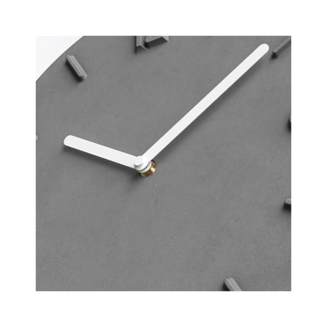 【素材の美しさを活かしたミニマルデザイン】グレーの無地コンクリート素材を活かしたシンプルかつモダンな掛け時計です。文字盤には「12」「3」「6」「9」の数字を立体的に配置し、それ以外の時間表示は繊細なラインで表現することで、洗練された印象に仕上げました。装飾を最小限に抑えた丸型デザインは、北欧インテリアやナチュラルテイストのお部屋に自然に馴染みます。