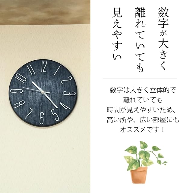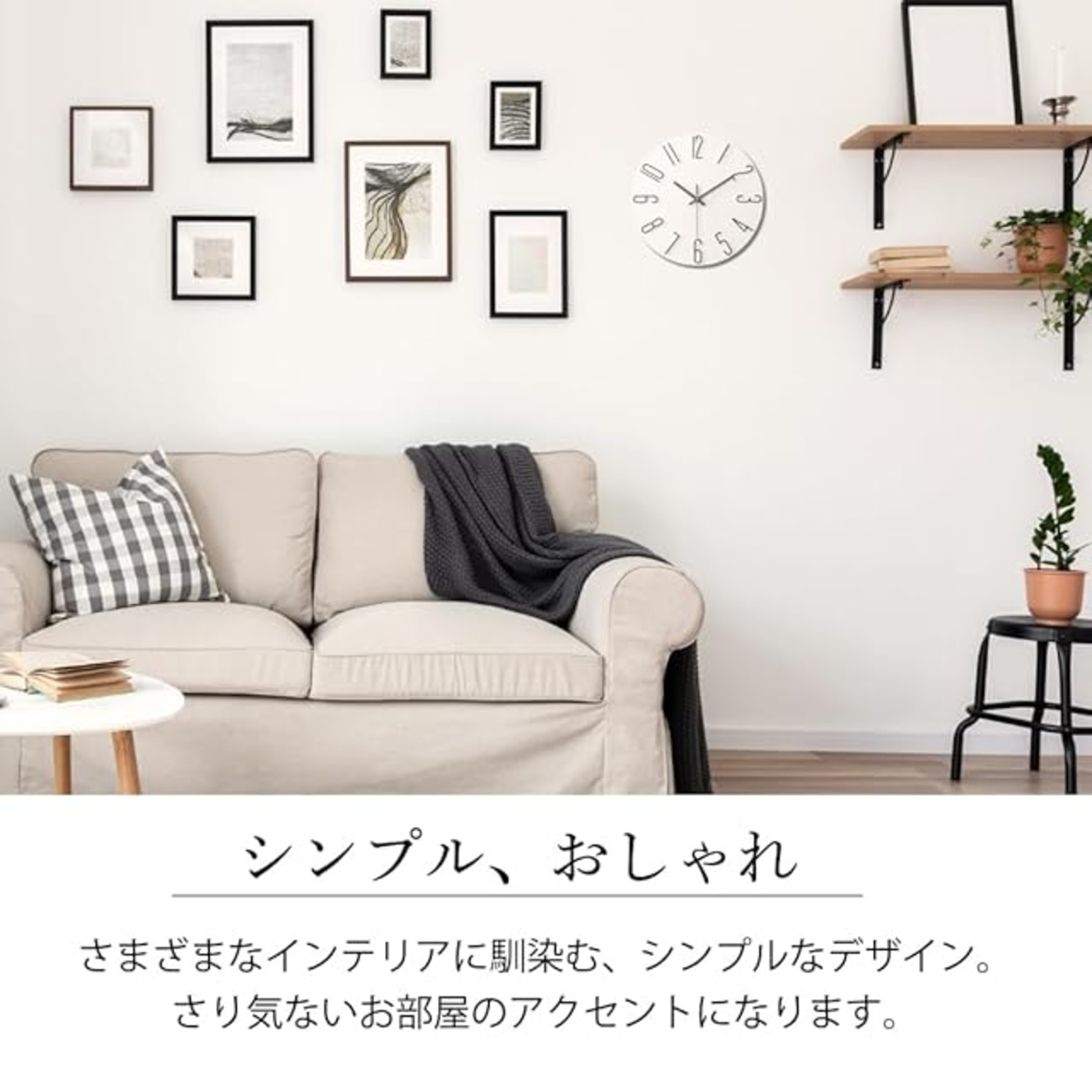 シンプルながら存在感のある掛け時計です。どのような壁紙やインテリア、内装にも邪魔をすることなくマッチします。静音性に優れているため、夜でも安心してご使用いただけます。韓国インテリア、モダンインテリア、北欧インテリアに特にマッチします。