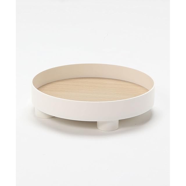 多機能収納トレイ 収納トレイ 収納 トレー 可愛い おしゃれ 北欧風 丸 木 お盆 食卓 調味料収納 調味料整理 インテリア オブジェ 直径約30cm 大きめ (WHITE)