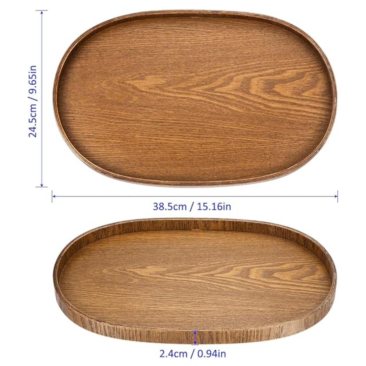パッケージに含まれるもの:茶色の楕円形のラスティックな木製プラッター1パック、以下の寸法です。高さ:2.4cm / 0.94" 内部の高さ:2cm / 0.79" 外寸:38.5 x 24.5cm / 15.16 x 9.65"(長さ×幅) ベース内寸:37.5 x 23cm / 14.76 x 9.06"(長さ×幅)