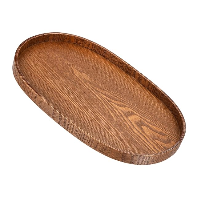 M METERXITY 木製のサービングトレイ 楕円形の木製装飾プラッター キッチン用トレイ センターピースキャンドルホルダートレイ 家庭やカフェの食事用(15x10")