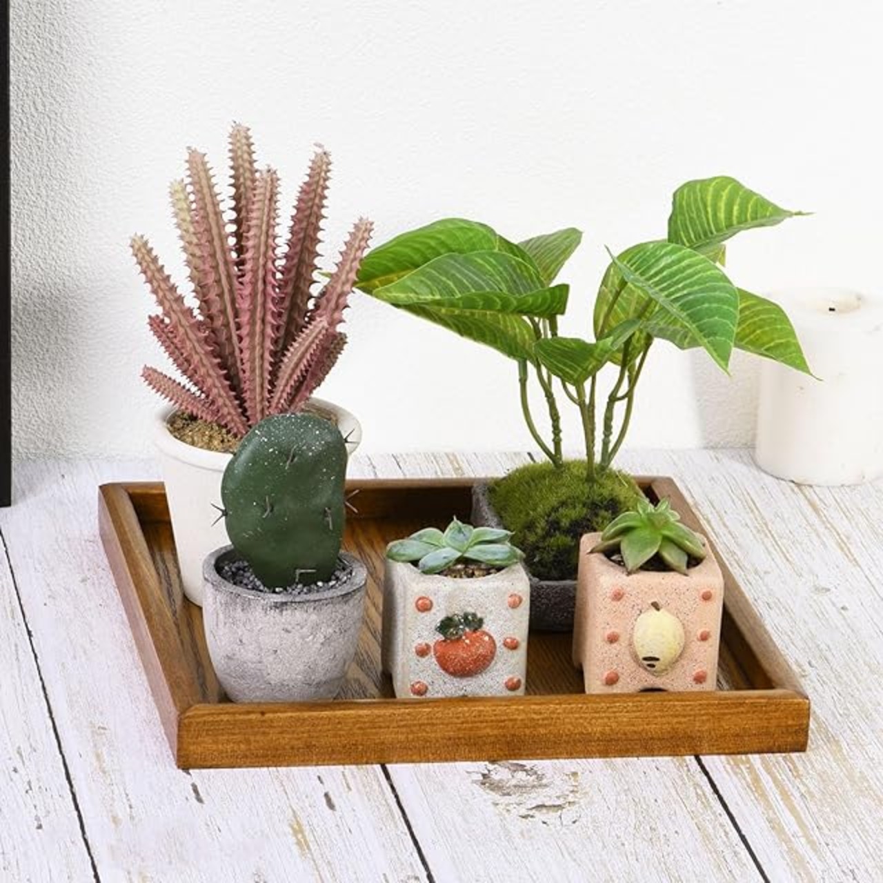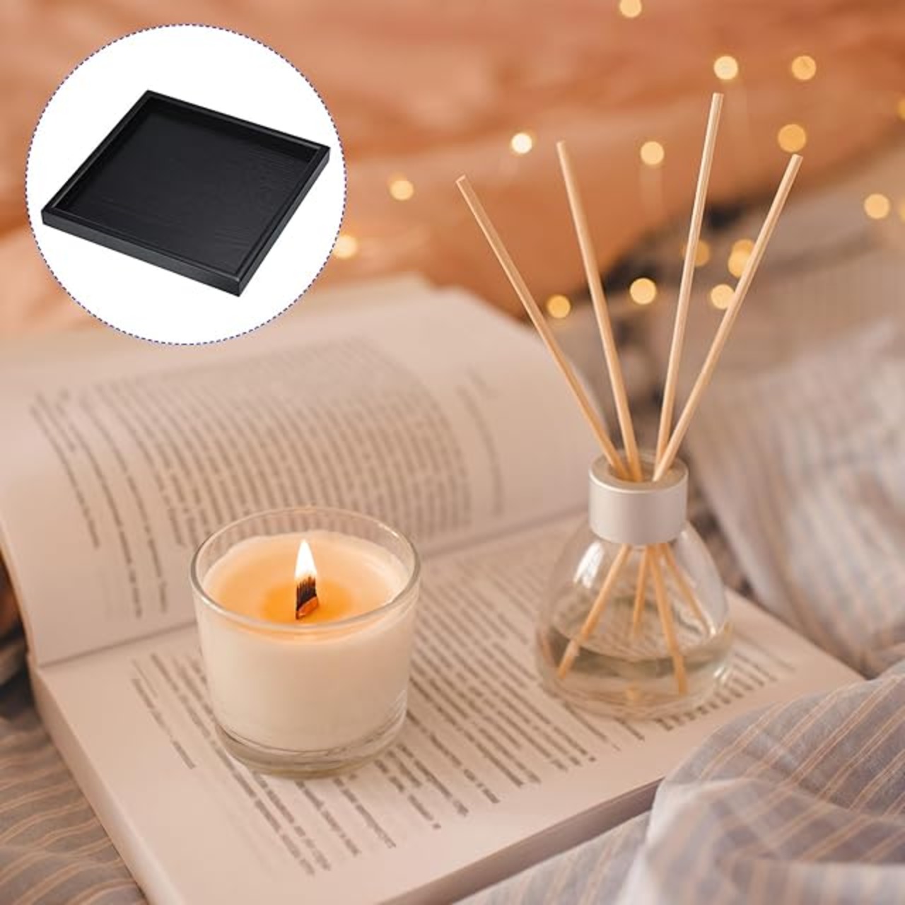 M METERXITY 木製のサービングトレイ 四角い木製の装飾用プラッター キッチン用トレイ センターピースキャンドルホルダートレイ 家庭やカフェの食事用(9.4" 黒)