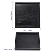 パッケージに含まれるもの:黒の四角いラスティックな木製プラッター1パック、以下の寸法です。外側の長さ:24cm / 9.45"、ベースの内側の長さ:21.5cm / 8.46"、高さ:2.3cm / 0.91"、内部の高さ:1.5cm / 0.59"