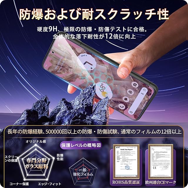 【貼り付けやすい、撥水撥油、指紋防止】 Google Pixel 8A 強化ガラスフィルムは静電気で貼り付けて、特別な自動吸着層があり、誰でも簡単に貼り付けることができます。ガラスフィルムを携帯電話の画面に合わせるだけで、自然にくっつき、気泡の発生を防止します。多数回に繰り返して使えて、携帯電話に何も痕跡を残しません。更に超硬質ナノコーティングを採用し、防水・抗菌でき、ガラス表面は指紋防止コーティングして、もっと先進な指紋防止技術を使って、もっと使いやすくなります。更に超強い指紋防止、汗防止、オイル防止、高強度アンチスクラッチ、落下防止、アンチビデオ干渉などの特徴を備えて、強いゲームプレイ機能を備えております。