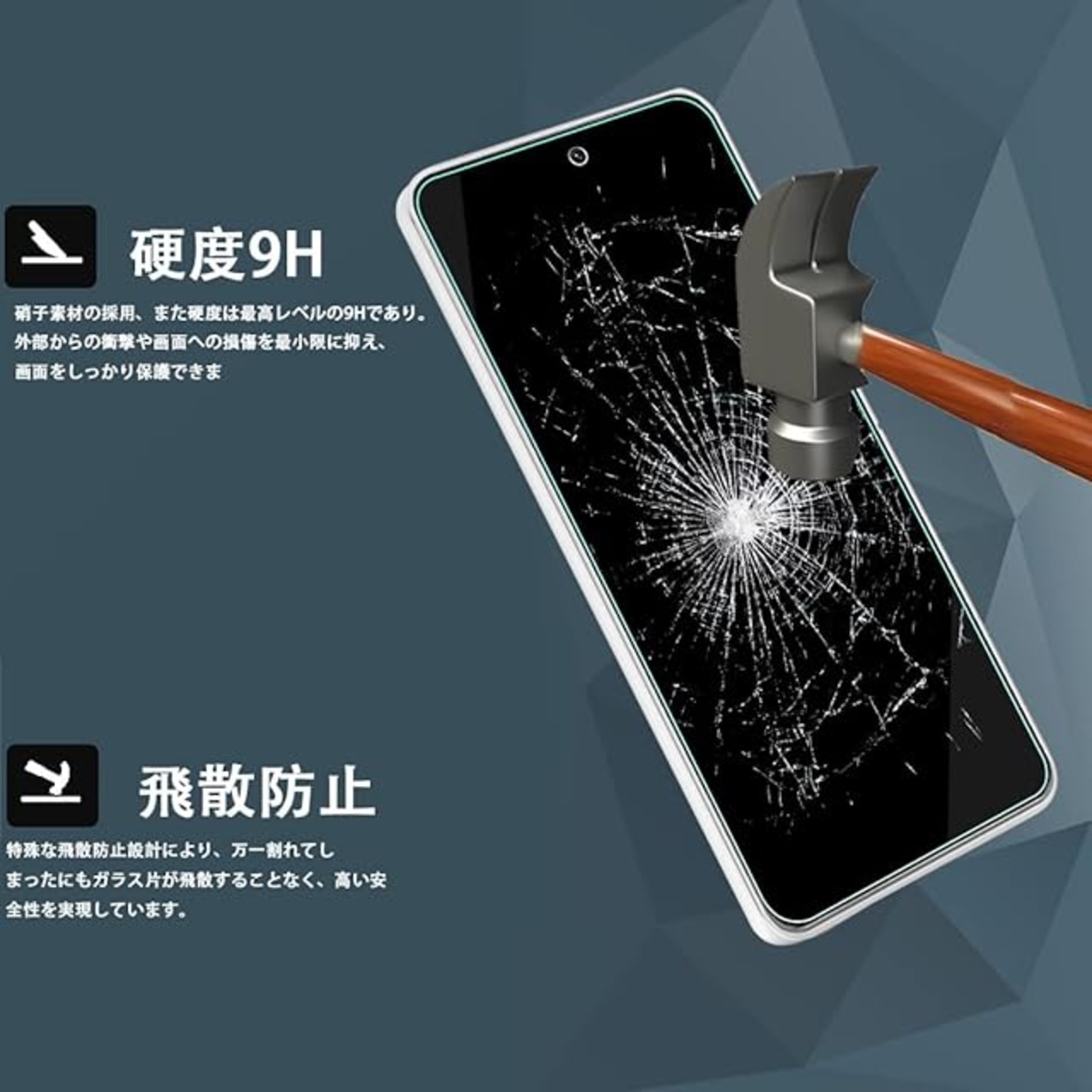 【硬度9H・飛散防止】表面硬度指数は9Hで、日本製旭ガラスを使用し、傷がつきにくい強化ガラスです。地面に落ちてもその衝撃力を受け、スマートフォンを守ります。カバンの中の鍵や小銭、砂利や砂など様々な傷から守ります。日常の様々な傷から守ります。外部からの衝撃をフィルムが吸収し、画面へのダメージを最低限まで抑えました。万が一割れても、抗粉砕フィルムコーティングの加工により破片の飛び散りもしっかり抑えられますご愛用のスマホをしっかり守ります。