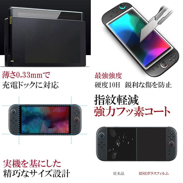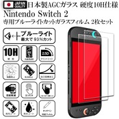 <p>アフターフォローアフターサポートも安心の<br> 日本法人 RISE PRODUCTS ブランド<br> 硬度10H 第3世代 W硬化製法(二次強化)済 <br> 国産AGCガラスを使用したブルーライトカットガラスフィルム 。<br> お得なガラスフィルム2枚セット 。<br> <br> ※ご注意ください ブルーライトカットガラスは太陽光の下では青く反射します、 その為、使う方によっては画面が見えずらい場合がございます。 日中太陽光が当たる屋外での使用頻度が多い場合は ブルーライトカットタイプではなくクリアタイプをお勧めします。<br> <br> ■対応機種:Nintendo Switch2 / スイッチ2<br> <br> 【製品仕様】<br> <br> ■安心の日本製素材 国産AGCガラスを使用。<br> <br> ■ブルーライトを93%カットする素材を使用。<br> <br> ■第3世代製法の最新技術のW硬化製法(2次強化)ガラスで耐衝撃性を強化。<br> <br> ■ガラス表面に400度の高温処理を6時間かけた強力コーティングを実現。<br> <br> ■フィルムが破損しても飛散防止加工で液晶画面を徹底保護。<br> <br> ■第3世代製法の最新技術のW硬化製法(2次強化)ガラスで対擦傷性を強化。<br> <br> ■透過率99%で液晶の鮮やかな画面をそのまま表現。<br> <br> ■耐指紋軽減加工により、汚れてもさっとふき取るだけで元どうりに。<br> <br> ■撥油撥水コーティングで汚れを弾き、長期間のコーティングを維持。<br> <br> ■気泡ゼロ、フィルムを位置に合わせておくだけであっという間に自動で吸着。<br> <br> ■柔軟性のある3Dシリコンが快適なタッチ感度を提供。<br> <br> ■5層のフィルム設計で強度のある0.33mmのガラスに仕上げました。<br> <br> ■充実した付属品、専用動画で簡単貼り付けが可能。<br> <br> ■万が一貼り付けに失敗しても安心のお届け後15日間の貼り付け付き。<br> <br> ■内容品<br> <br> ガラスフィルム ×2、ウェットワイプ×2、ドライワイプ×2、埃吸着シート×2、クリーニングクロスx2、パッケージ裏面貼付説明書付属。<br> <br>