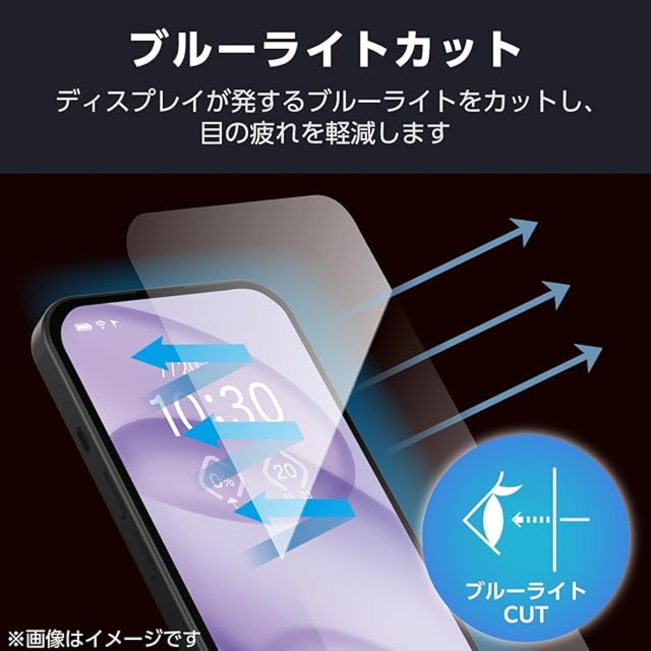 ガラス特有のなめらかな指滑りを実現する、ブルーライトカットタイプの画面保護ガラスフィルムです。