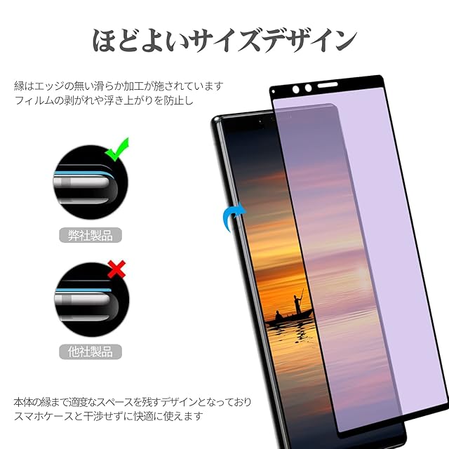☆【ほどよいサイズデザイン 、フルカバーデザイン】正確なラウンドエッジ加工により、引っ掛かり感がなくサイドからの衝撃を和らげ気持ち良い滑らかな質感を実現しました。携帯は端部のカーブがフィルム剥がれ、浮きの防止、スマホケース装着スペース確保のため、機器の曲面の縁にスペースを残すデザインとなっています。