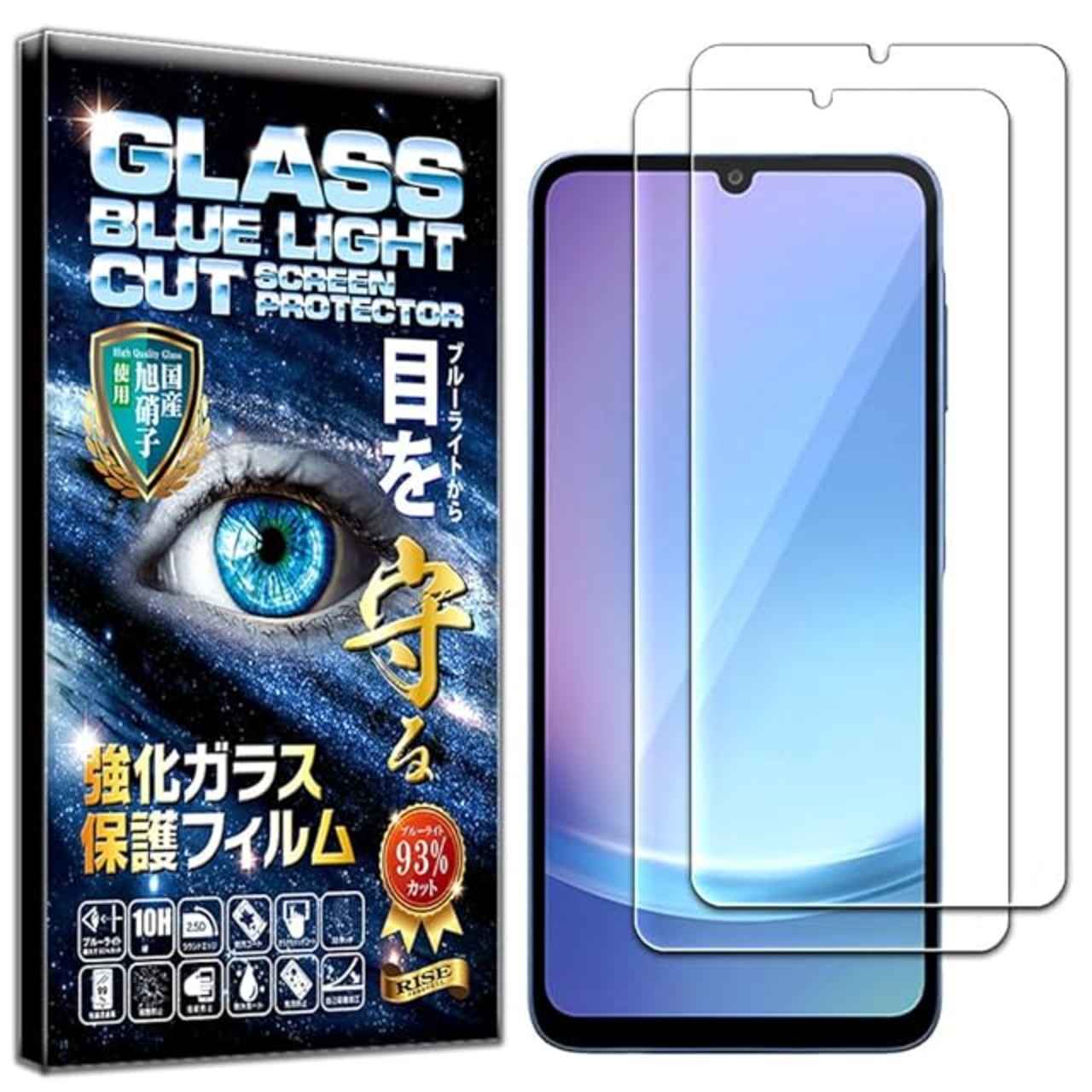 <p>アフターフォローアフターサポートも安心の<br> 日本法人 RISE PRODUCTS ブランド<br> 硬度10H 第3世代 W硬化製法(二次強化)済 <br> 国産AGCガラスを使用したブルーライトカットガラスフィルム 。<br> お得なガラスフィルム2枚セット 。<br> <br> ※ご注意ください ブルーライトカットガラスは太陽光の下では青く反射します、 その為、使う方によっては画面が見えずらい場合がございます。 日中太陽光が当たる屋外での使用頻度が多い場合は ブルーライトカットタイプではなくクリアタイプをお勧めします。<br> <br> ■対応機種:Galaxy A25 5G SC-53F SCG33<br> <br> 【製品仕様】<br> <br> ■安心の日本製素材 国産AGCガラスを使用。<br> <br> ■ブルーライトを93%カットする素材を使用。<br> <br> ■第3世代製法の最新技術のW硬化製法(2次強化)ガラスで耐衝撃性を強化。<br> <br> ■ガラス表面に400度の高温処理を6時間かけた強力コーティングを実現。<br> <br> ■フィルムが破損しても飛散防止加工で液晶画面を徹底保護。<br> <br> ■第3世代製法の最新技術のW硬化製法(2次強化)ガラスで対擦傷性を強化。<br> <br> ■透過率99%で液晶の鮮やかな画面をそのまま表現。<br> <br> ■耐指紋軽減加工により、汚れてもさっとふき取るだけで元どうりに。<br> <br> ■撥油撥水コーティングで汚れを弾き、長期間のコーティングを維持。<br> <br> ■気泡ゼロ、フィルムを位置に合わせておくだけであっという間に自動で吸着。<br> <br> ■柔軟性のある3Dシリコンが快適なタッチ感度を提供。<br> <br> ■5層のフィルム設計で強度のある0.33mmのガラスに仕上げました。<br> <br> ■充実した付属品、専用動画で簡単貼り付けが可能。<br> <br> ■万が一貼り付けに失敗しても安心のお届け後15日間の貼り付け付き。<br> <br> ■内容品<br> <br> ガラスフィルム ×2、ウェットワイプ×2、ドライワイプ×2、埃吸着シート×2、クリーニングクロスx2、パッケージ裏面貼付説明書付属。<br> <br>